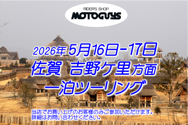 恒例!モトガイズツーリング今年も開催します! 今回の行先は「佐賀県 吉野ケ里」方面。 * 当店でご購入いただいた車両のみご参加いただけます。
